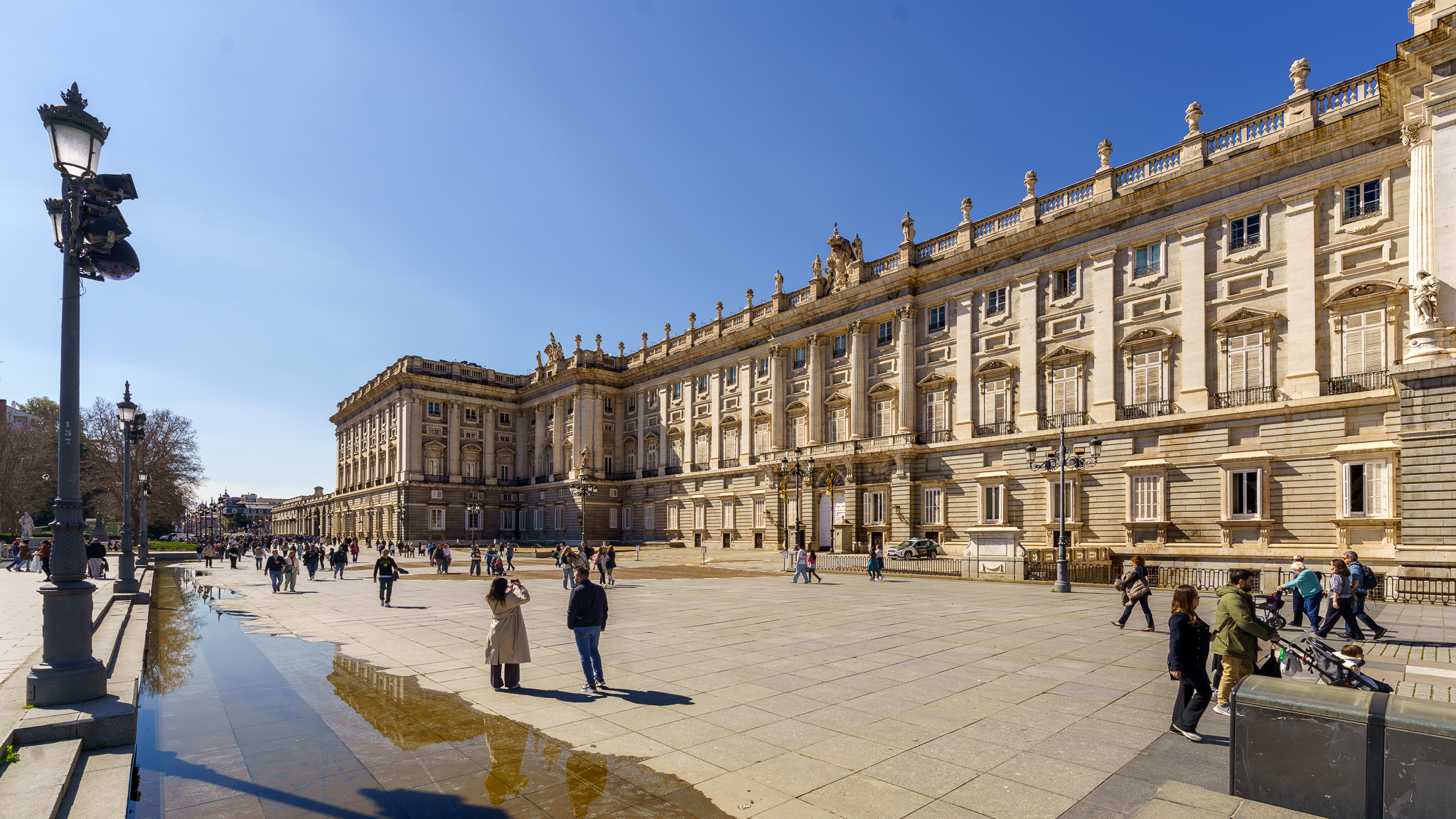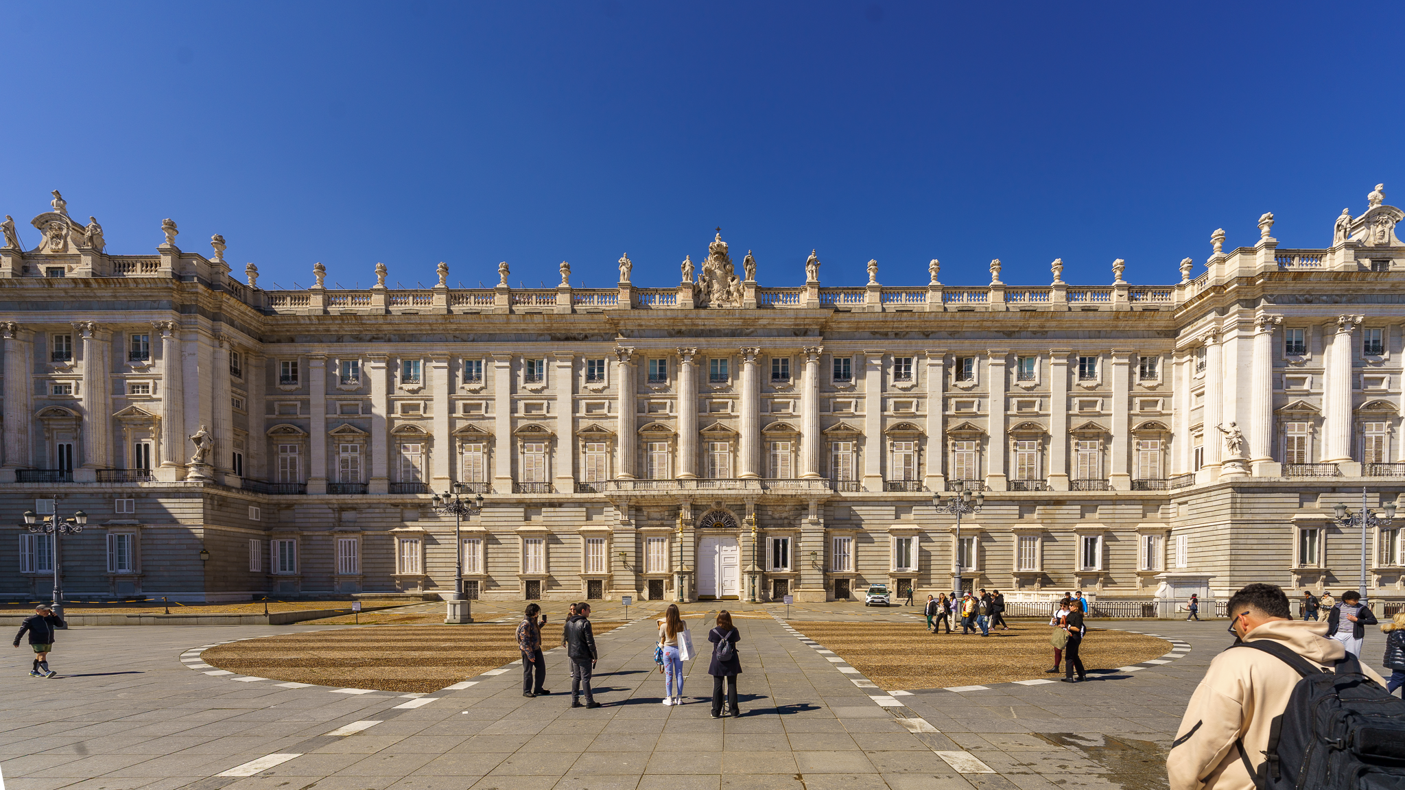 Pada tanggal 12 Maret 2026 sekitar pukul 13.00 waktu setempat, kondisi lingkungan di kawasan Royal Palace Madrid menunjukkan karakter iklim musim semi yang relatif nyaman dengan suhu udara berkisar antara 13–15 °C dengan sinar matahari yang terik dan langit biru tanpa awan.