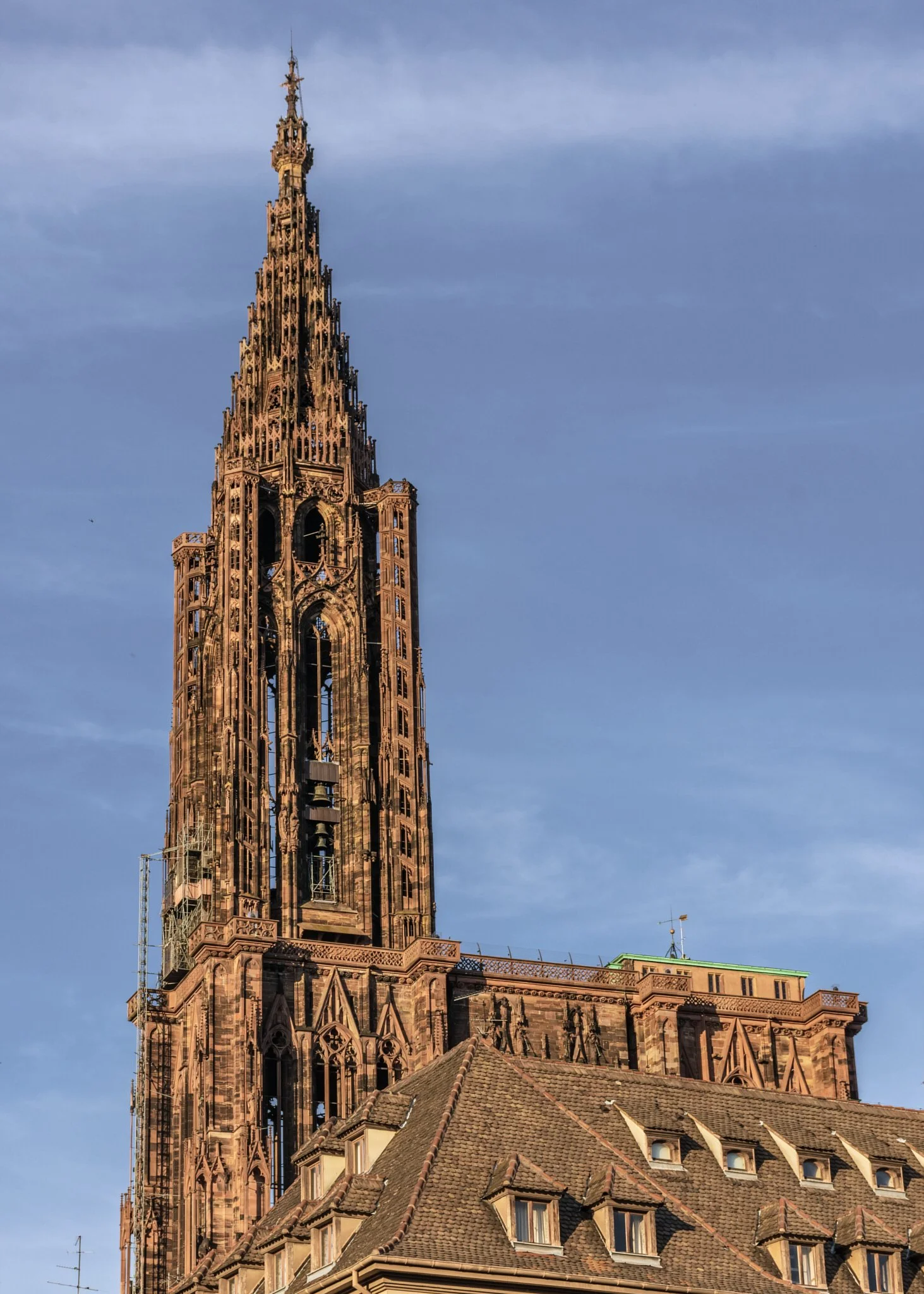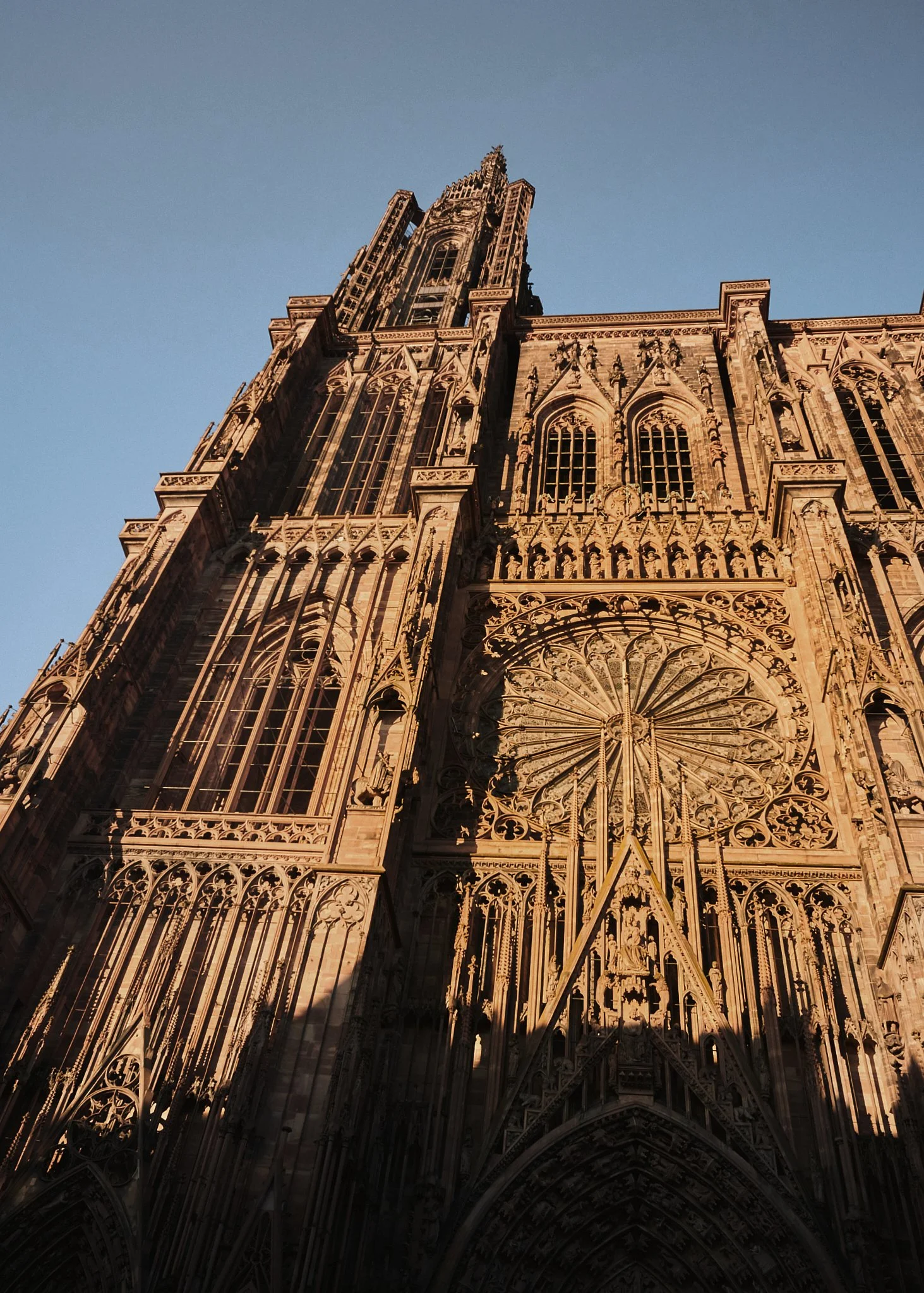 Tidak seperti katedral Gotik Prancis lainnya yang memiliki dua menara simetris, Strasbourg hanya memiliki satu menara utama. Keputusan ini justru memperkuat karakter visualnya: sebuah asimetri monumental yang ikonik.
