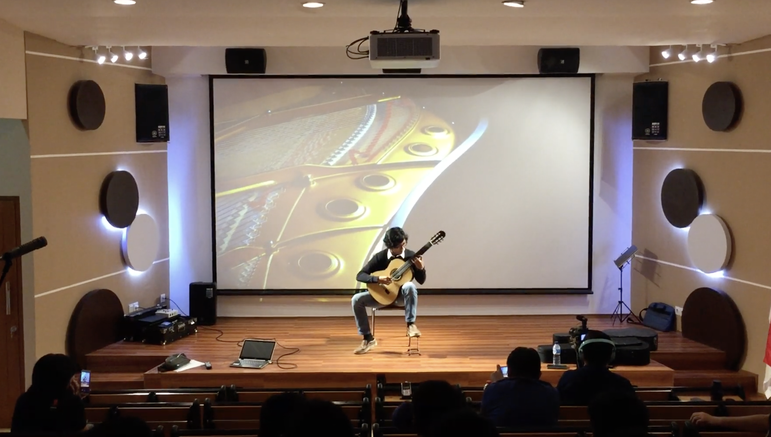 21 Oktober 2017 Sandhya Widhinugrha Gitanada Musik (Sudirman Leman’s brilliant student) memainkan karya BJ.S.Bach Prelude BWV 1006a pada pagelaran Guitar Classic Clinic and Demo di Ruang Audio Video Canisius College, Jakarta.